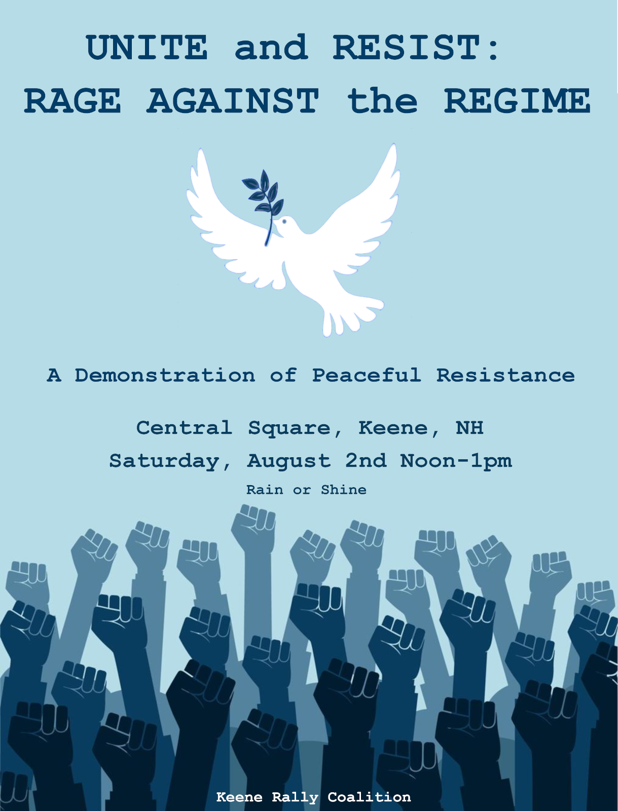 Yup! There’s another nationwide peaceful rally planned for Sat. Aug. 2nd to direct our shared rage against the Trump regime for its weaponization of ICE against our communities, the continuing cover up of the Epstein Files, the continuing attacks on transgender rights and the removal of LGBTQ+ from our history. Let’s not forget the cruelty by gutting Medicaid, SNAP, USAID and the construction of concentration camps. Destroying the Dept. of Education, NOAA, the National Weather Service and the threats to cut Social Security. These rallies are inclusive, nonviolent, community-led and New Hampshire will be joining in again as we stand up for the Constitution, human rights, and the rule of law.